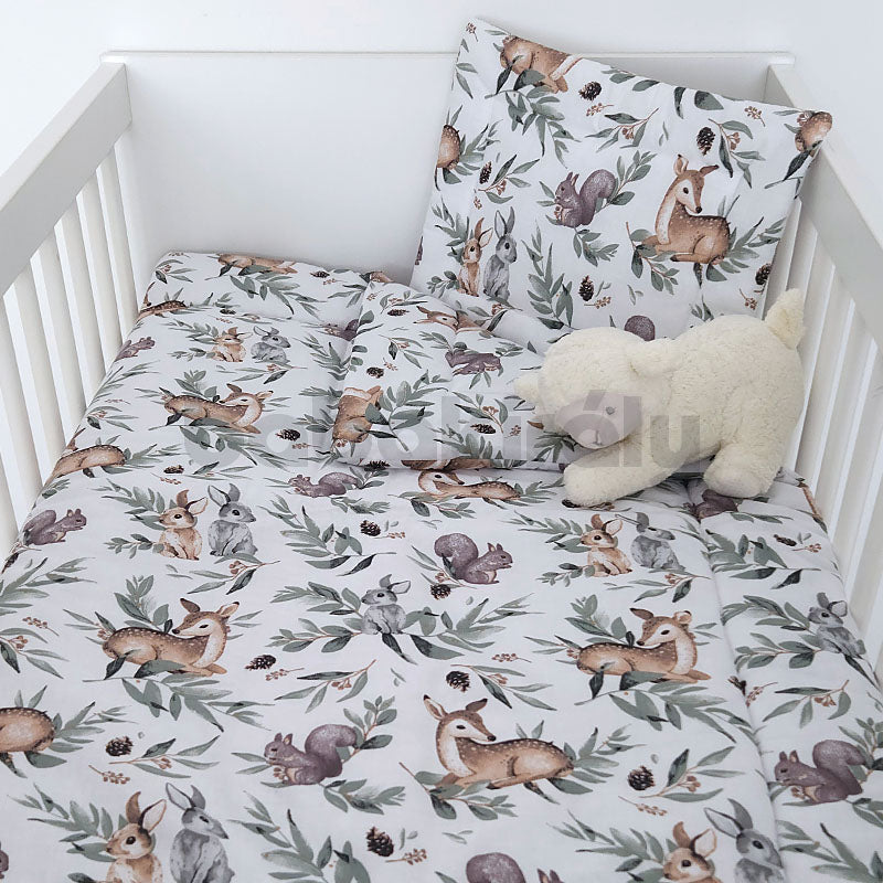 Puha, mosható, nem csomósodó gyermek ágynemű vidám mintás pamut anyagból. Újszülött kortól ajánljuk. Méreteiből adódóan bármilyen babaágyban jól használható.