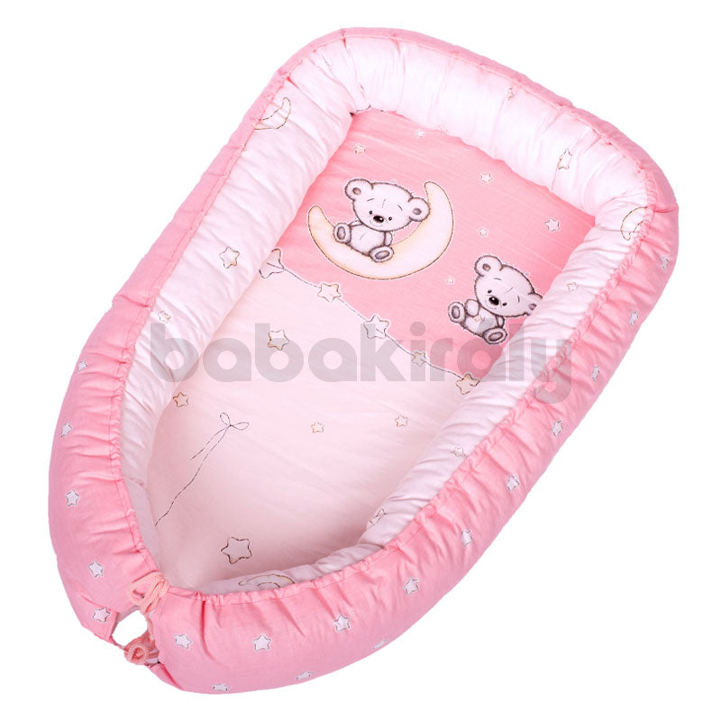 Babafészek - Maci és hold - kis macikkal - Rózsaszín