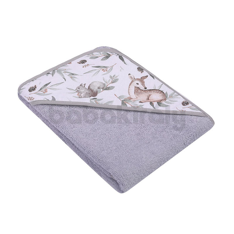 Puha, vastag anyagú kifogó, vidám mintás kapucnival. Segítségével a baba kíméletesen fürdethető meg és törölhető át. A kapucni melegen tartja a gyermek vizes fejét, így megelőzhető vele a meghűlés vagy megfázás. Első használat előtt javasoljuk a törölköző kimosását, a jobb nedvszívó képesség elérése céljából.