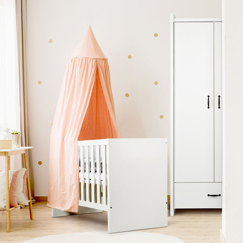3 fokozatban állítható magasságú, kényelmes fekvő felületű kiságy, melyet mindig a gyermek korának megfelelően lehet beállítani. Kisebb korban a legmagasabb szinten, majd gyermekünk növekedésével párhuzamosan egyre lejjebb engedve ajánljuk használatát. Ez a szülőknek is rendkívül praktikus, mert nem szükséges nagyot hajolni a gyermek kivételekor. Legalacsonyabb fekvő pozíció esetén 2 kivehető rács oszlopának köszönhetően gyermeke önállóan elhagyhatja kiságyát. A csomag tartalmaz egy fehér színű ágyneműtartót is, melyet a kiságy alá lehet helyezni.