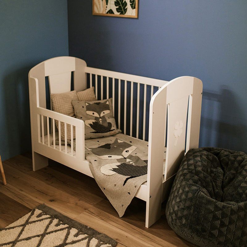 3 fokozatban állítható magasságú, kényelmes fekvő felületű kiságy, melyet mindig a gyermek korának megfelelően lehet beállítani. A 3 fokozat 51, 36 és 21 cm-re helyezkedik el a padlótól mérve. Kisebb korban a legmagasabb szinten, majd gyermekünk növekedésével párhuzamosan egyre lejjebb engedve ajánljuk használatát. Ez a szülőknek is rendkívül praktikus, mert nem szükséges nagyot hajolni a gyermek kivételekor. Legalacsonyabb fekvő pozíció esetén 3 kivehető rács oszlopának köszönhetően gyermeke önállóan elhagyhatja kiságyát. A csomag tartalmaz egy fehér színű ágyneműtartót is, melyet a kiságy alá lehet helyezni.