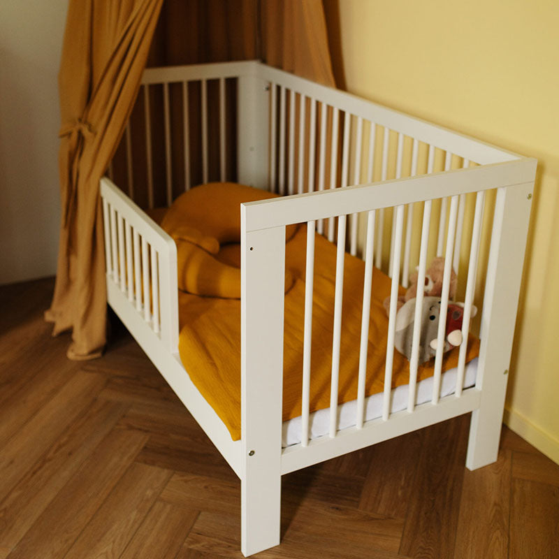 3 fokozatban állítható magasságú, kényelmes fekvő felületű kiságy, melyet mindig a gyermek korának megfelelően lehet beállítani. Kisebb korban a legmagasabb szinten, majd gyermekünk növekedésével párhuzamosan egyre lejjebb engedve ajánljuk használatát. Ez a szülőknek is rendkívül praktikus, mert nem szükséges nagyot hajolni a gyermek kivételekor. Legalacsonyabb fekvő pozíció esetén 3 kivehető rács oszlopának köszönhetően gyermeke önállóan elhagyhatja kiságyát. Opcionálisan vásárolható hozzá leesésgátló, így alvás közben védelmet nyújt a már óvodás gyermekek számára is. Ágyneműtartóval is kiegészíthető.