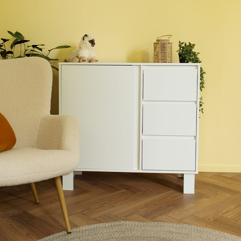 Az Olivia fehér komód tökéletes választás azoknak a szülőknek, akik esztétikus és praktikus teret szeretnének kialakítani. Három tágas, golyóscsapágyas fiókkal van felszerelve, amelyek biztosítják a sima nyitást és zárást. Ezenkívül az egyik nyitható előlap két polcot rejt, amelyeken minden elfér, amire a gyermeke szobájában szüksége lehet. Az opcionális pelenkázó feltét a komód bal oldalán található, így a fiókok könnyebben hozzáférhetőek. Magas lábakkal rendelkezik, ami nemcsak a tisztítást könnyíti meg, hanem modern megjelenést is kölcsönöz neki.