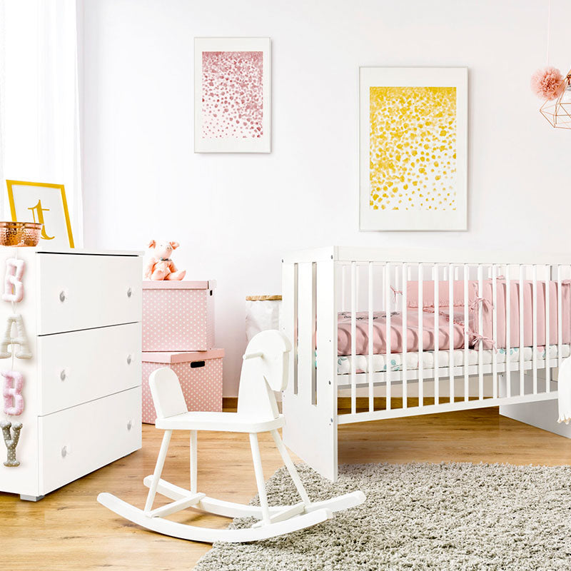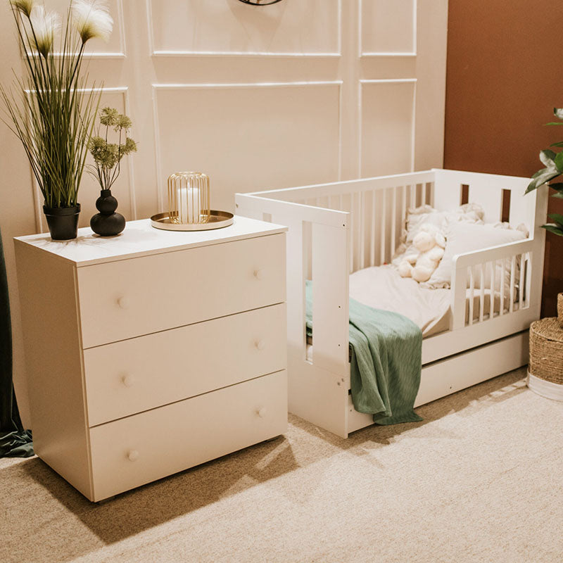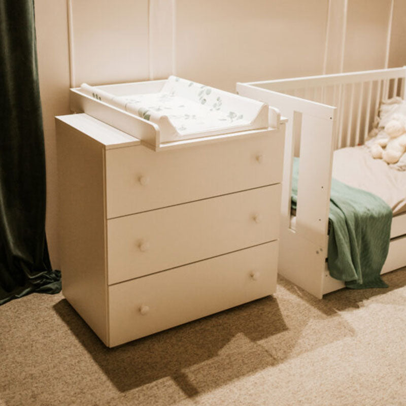 Kiváló minőségű három fiókos komód, jól pakolható fiókokkal. Praktikus pelenkázó feltéttel, amelybe a webáruházunkban kapható puha pelenkázó lapok pontosan illeszkednek. Nem csak a kisgyermekek, hanem akár tinédzser szobáknak is hasznos bútora lehet a pelenkázó feltét leszerelését követően.