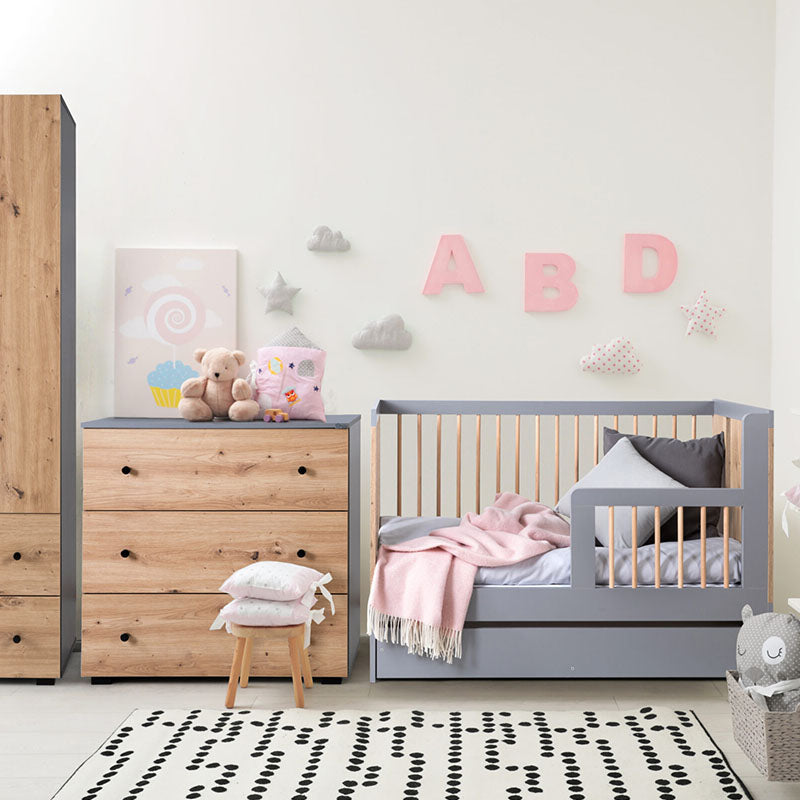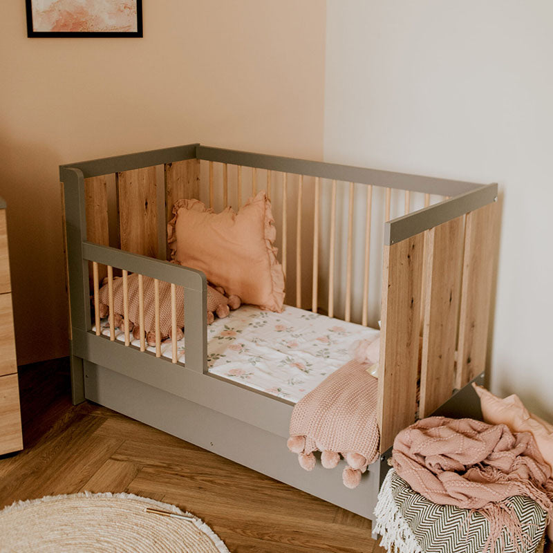 Klups Paulina - Leesésgátlós és ágyneműtartós kiságy - Grafit/Tölgy