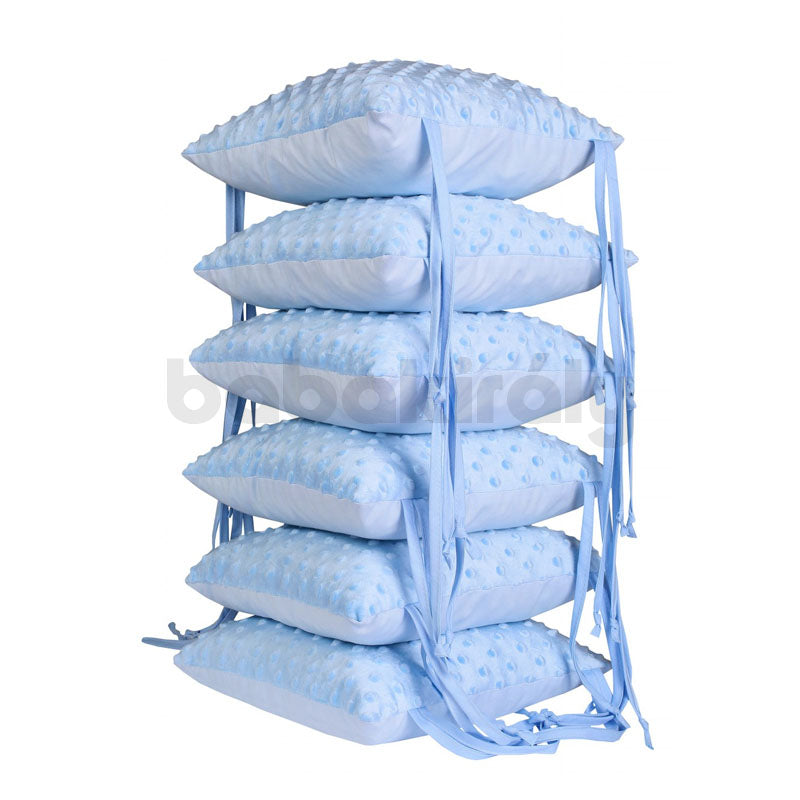 Puha, mosható kispárnákból álló fejvédő, vidám színű minky (buborékos) anyagból. Újszülött kortól ajánljuk. Méreteiből adódóan bármilyen babaágyban jól használható.