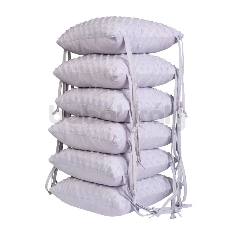 Puha, mosható kispárnákból álló fejvédő, vidám színű minky (buborékos) anyagból. Újszülött kortól ajánljuk. Méreteiből adódóan bármilyen babaágyban jól használható.