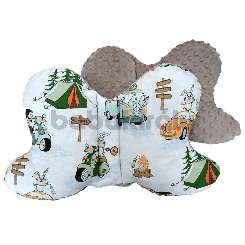 Puha és mosható, kétoldalas, stabilizáló utazó párna, amely pillangó elnevezését alakjáról kapta. Speciális formájának köszönhetően a gyermek fejéhez igazodik. Autósülésben, babakocsiban vagy akár babafészekben is kiváló stabilitást biztosíthat. Méreteiből adódóan bármilyen babaágyban, babafészekben vagy babakocsiban jól használható. Újszülött kortól ajánljuk!