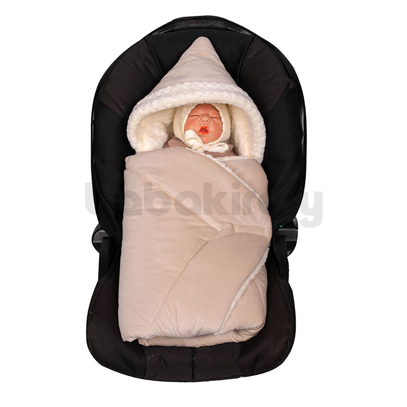 Télen ajánlott, kiváló minőségű, hordozóba vagy autósülésbe való bársonyos, puha takaró, amely vidám színekkel, kapucnival ellátva érhető el. Kapucnijának köszönhetően a hűvösebb időben történő utazások során sem fázik meg a baba feje, a kialakított öv-réseken keresztül pedig a biztonsági öv könnyedén átbujtatható és rögzíthető.